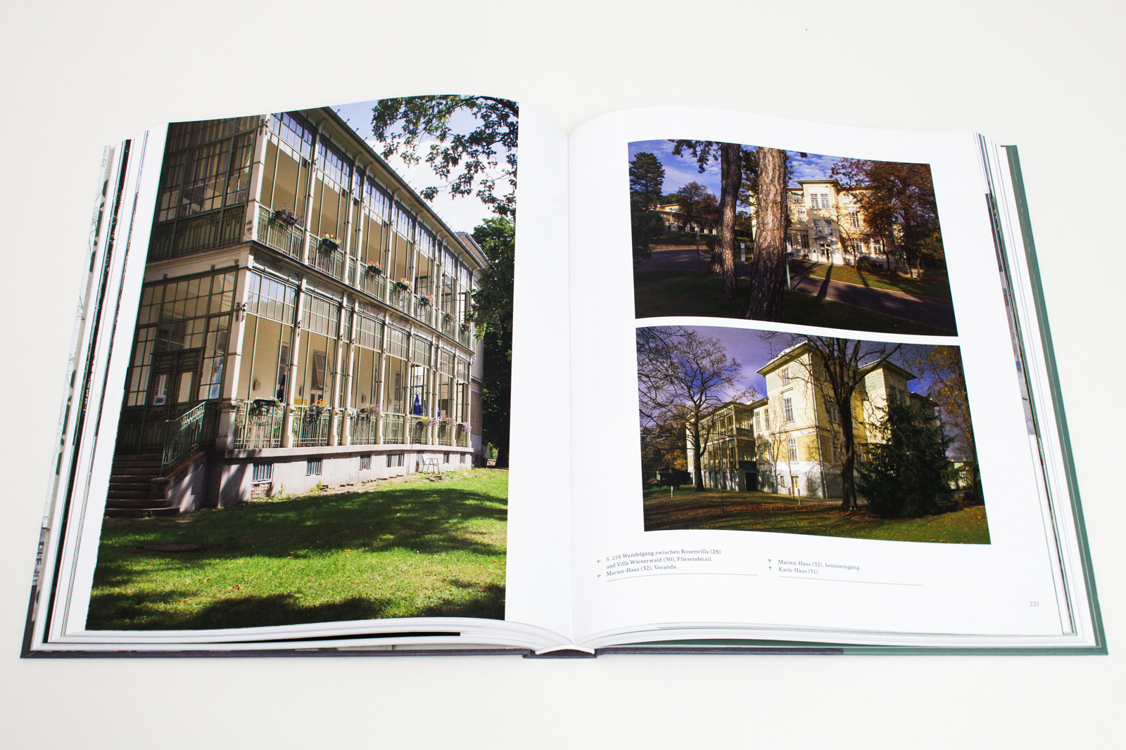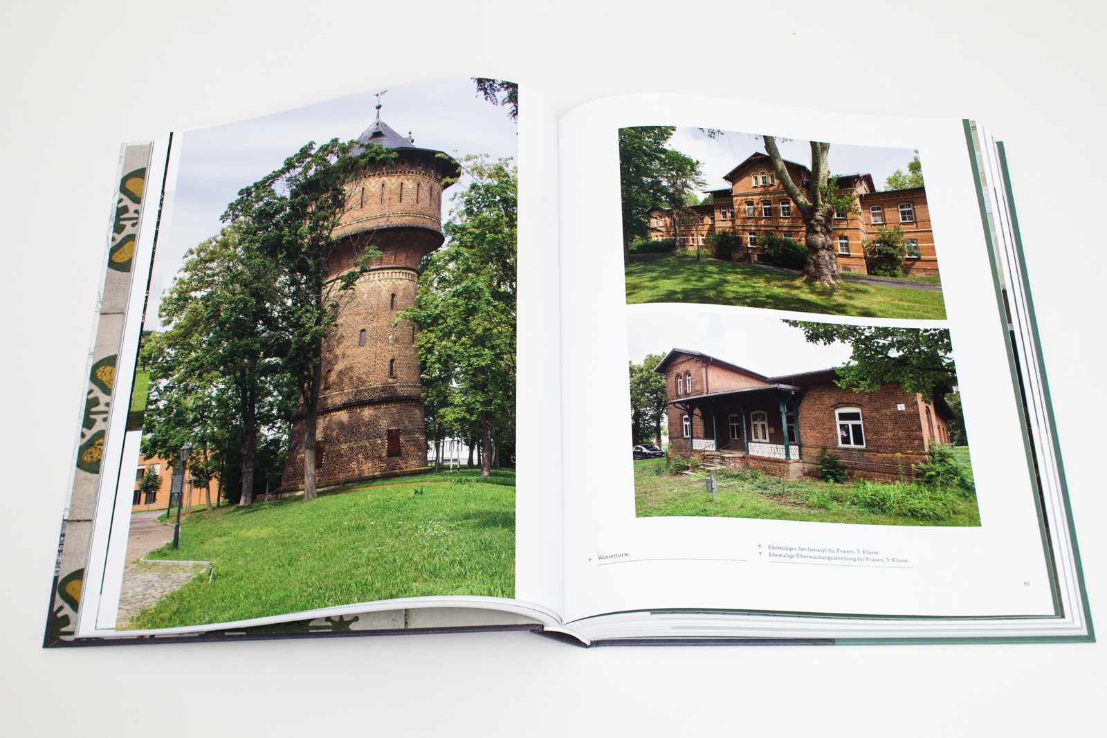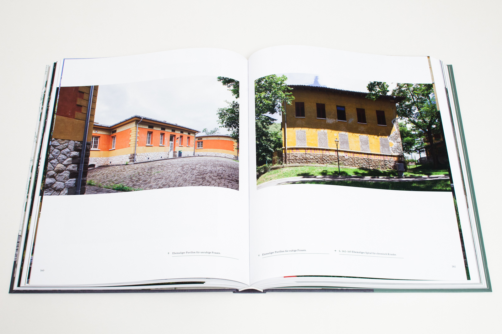 Nach einem Fotoessay lädt ein Katalogteil zu einem ausgedehnten Rundgang durch Heil- und Pflegeanstalt, Sanatorium und Wirtschaftsareal ein: erst unlängst aufgefundene und bisher unveröffentlichte Originalpläne und historische Fotografien sowie instruktive Kommentare führen dem Leser die Baugeschichte des Areals im Detail vor Augen.
